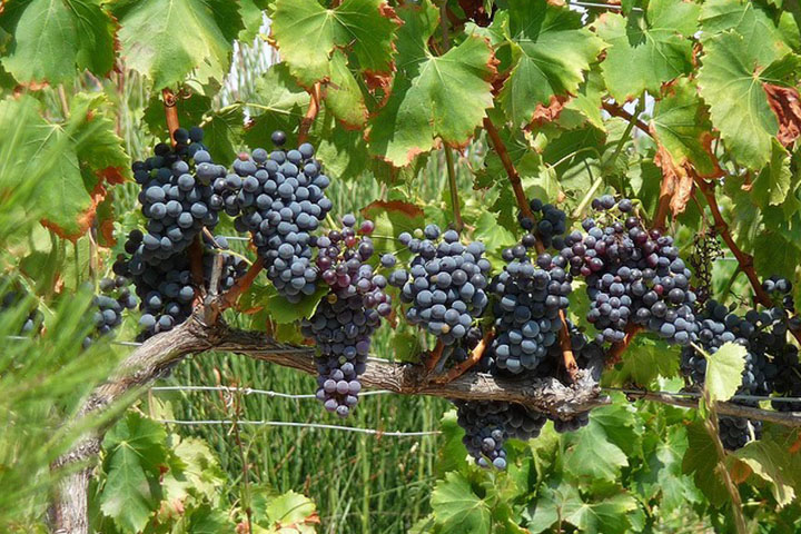 The Grenache vine is characterized by its strong wood canopy and upright growth. It has good wind tolerance (which is useful with the northerly Cierzo and Mistral winds that influence the regions of Aragon and the Rhone) and has shown itself to be very suited for the dry, warm windy climate around the Mediterranean. The vine buds early and requires a long growing season in order to fully ripen. Grenache is often one of the last grapes to be harvested, often ripening weeks after Cabernet Sauvignon. The long ripening process allows the sugars in the grape to reach high levels, making Grenache-based wines capable of substantial alcohol levels, often at least 15% ABV. While the vine is generally vigorous, it is susceptible to various grape diseases that can affect the yield and quality of the grape production such as coulure, bunch rot and downy mildew due to the vine’s tight grape clusters. Marginal and wet climates can increase Grenache’s propensity to develop these viticultural dangers. The vine’s drought resistance is dependent on the type of rootstock it is planted on but on all types of rootstocks, Grenache seems to respond favorably to some degree of moisture stress.