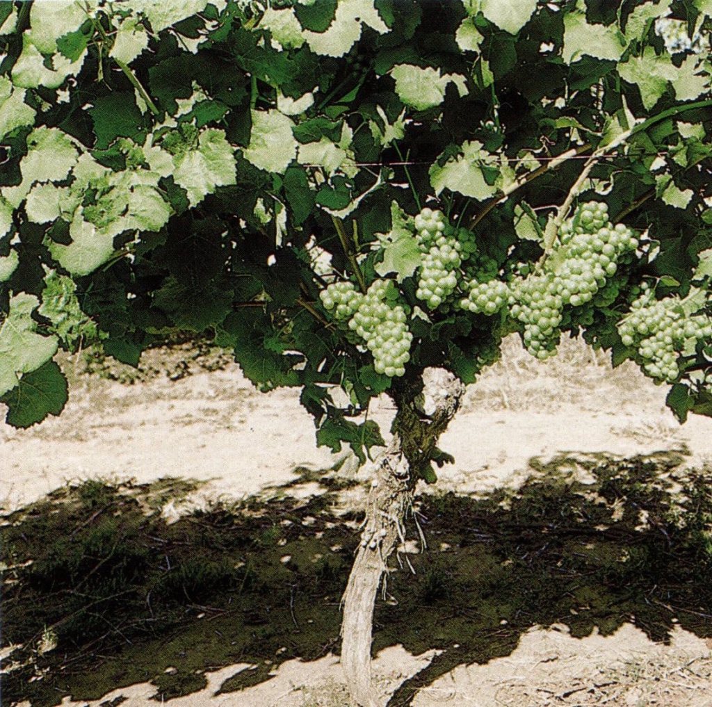Mauzac vines have flat white cottony buds with a pinkish border and young yellowish fluffy leaves. and whole three-lobed, heart-shaped adult leaves. It petiolar sinus has overlapping edges. Its bunches are median in size with round grapes.